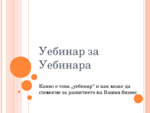 Уебинар е скъсеното наименование на технологията на web conferencing, или "уеб конференции"...
