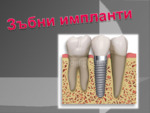 Зъбните импланти, използвани от повечето стоматолози са кореново-оформени импланти, което означава, че те са заместители на естествените зъбни корени в зоните на липсващите зъби...