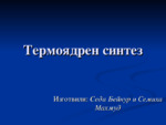 Презентация, предназначена за по-бързото усвояванене на учебния материал. Процесът, при който две леки ядра се сливат и се образува ядро с по-голямо масово число и по-голяма енергия на връзката, се нарича реакция на ядрен синтез...
